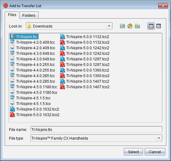 Wählen Sie die Datei „TI-Nspire.tlo“ aus. |