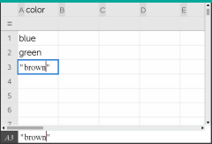 | 1. | Erstellen Sie eine Gruppenliste mit den Namen für jede Kategorie. Nennen Sie in diesem Beispiel die Liste „Farbe“ und geben Sie Namen für die Augenfarbe ein. Schreiben Sie die Kategorienamen in Anführungszeichen, damit sie nicht als Variablen erfasst werden. |