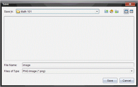 You can save captured screens for use in other TI-Nspire™ documents that allow images or for use in another application such as Microsoft® Word. You can save images in the following formats: .jpg, .png, or .gif. You can save one image at a time, select multiple images to save, or save all captured images.