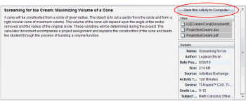 Note: You can also right-click on the selected activity and choose Save to Computer.