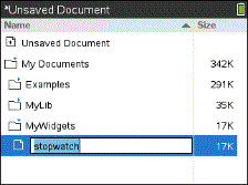 Note: If you are planning to transfer these documents to your computer for use in the TI-Nspire™ software, it is best to use names that are accepted on your computer. Avoid punctuation, \, /, or symbols.