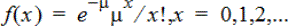 Calcula la probabilidad en x para la distribución discreta de Poisson con la media especificada, μ, que debe ser un número real > 0. x puede ser un número entero o una lista de enteros. La función de densidad de probabilidad (pdf) es: