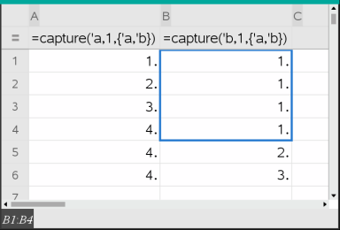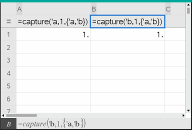 La celda de fórmula ahora contiene una expresión similar a =capture(objpathX,1,objpathY).