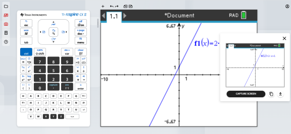 Astuce : Pour voir l’ensemble de l’espace de travail de la calculatrice lors de la capture de l’écran, utilisez la barre de redimensionnement pour réduire la taille du clavier jusqu’à ce que l’espace de travail ne soit plus bloqué par la fenêtre contextuelle de capture d’écran.