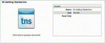| ▶ | Pour prévisualiser les contenus d'un fichier .tns, sélectionnez Cliquez ici pour prévisualiser le classeur dans le volet d'aperçu. |