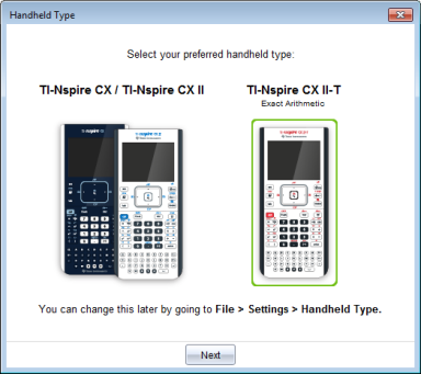 1. Clique em File (Ficheiro) > Settings (Definições) > Handheld Type (Tipo de unidade portátil).