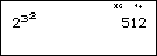 In MathPrint™ mode, exponentiation using G is evaluated from right to left. The expression 2^3^2 is evaluated as 2^(3^2), with a result of 512.