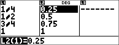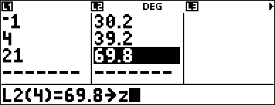 | • | Dans cet état, appuyez sur v pour afficher un menu permettant de coller les listes L1, L2 ou L3 dans la formule de calcul. |
