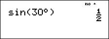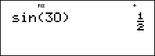 Nous savons que 30¡ = p / 6 radians. Dans le mode par défaut, en degrés, calculez le sinus de 30¡. Mettez ensuite la calculatrice sur le mode radian et calculez le sinus de p / 6 radians.