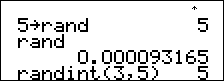 Génère un entier aléatoire compris entre deux entiers, A et B, où A { randint { B. Les 2 entiers sont séparés par une virgule. |