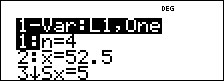 | 2. | Appuyez sur % t. Sélectionnez 1-Var ou 2-Var et appuyez sur <. |