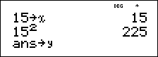 L permet de stocker des valeurs dans des variables. Appuyez sur L pour stocker une valeur, puis sur z pour sélectionner la variable dans laquelle vous voulez stocker cette valeur. Appuyez sur < pour stocker la valeur dans la variable sélectionnée. Si cette variable contient déjà une valeur, celle-ci est remplacée par la nouvelle valeur.