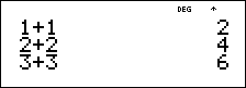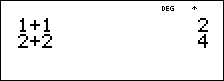 # et $ permet de parcourir les éléments de menu, les entrées de l'éditeur de données et les entrées précédentes sur l'écran de calcul en déplaçant le curseur vers le haut et le bas. Vous pouvez réutiliser une entrée précédente en appuyant sur < pour la coller dans la dernière ligne, puis évaluer une nouvelle expression.