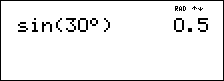 Si vous spécifiez un modificateur d'unité d'angle à partir du menu Angle, le calcul est effectué selon ce type d'angle, mais le résultat sera affiché dans le mode angulaire sélectionné.