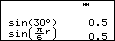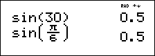 Nous savons que 30Ä = À / 6 radians. Dans le mode par défaut, en degrés, calculez le sinus de 30Ä. Mettez ensuite la calculatrice sur le mode radian et calculez le sinus de À / 6 radians.