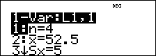 | 4. | Appuyez sur < pour afficher le menu des variables. |