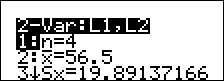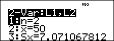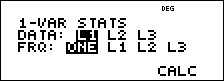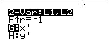 | 2. | Appuyez sur % t. Sélectionnez 1-Var ou 2-Var et appuyez sur <. |