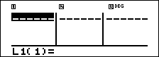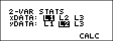 | 1. | Entrez les données dans L1, L2 ou L3. (Voir Éditeur de données et conversions de liste.) |