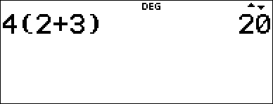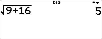 Mit den Tasten F und a eingegebene Ausdrücke werden sowohl im klassischen als auch im MathPrint™ Modus von links nach rechts abgearbeitet. 3 F F wird also ausgerechnet als (32)2 = 81. |