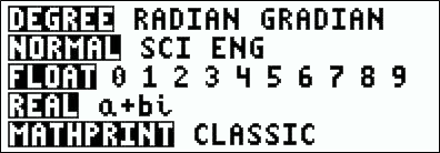 DEGREE RADIAN GRADIAN – Legt den Winkelmodus fest: Grad, Bogenmaß, Neugrad.
