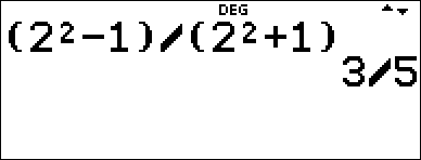 | • | Wenn sich der Cursor in einem klassischen Eintrag befindet, geben Sie den Zählerausdruck in Klammern ein, drücken dann P, um den dicken Bruchstrich anzeigen, und geben anschließend ebenfalls in Klammern den Nennerausdruck ein, damit das Ergebnis wie für Ihre Aufgabe erwartet berechnet wird. |