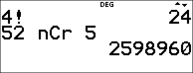 Berechnet die Anzahl der möglichen Kombinationen, wenn die nichtnegativen ganzen Zahlen n und r bekannt sind. Die Reihenfolge der Elemente ist unwichtig (wie etwa bei einem Blatt Karten, das man auf der Hand hat). |