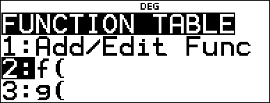 Gør det muligt at definere funktionen f(x) eller g(x) eller begge og generere en tabel med værdier. r på en værdi i tabellen skifter talformatet. |