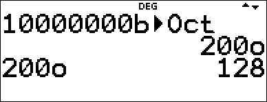 % " viser TYPE-menuen, hvor du kan angive basen for et tal uanset lommeregnerens aktuelle talbasetilstand.