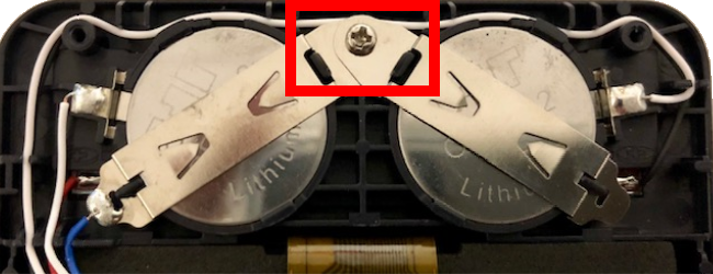 Fjern skruerne fra batteriklemmen med en lille skruetrækker, og tag batteriene ud. |