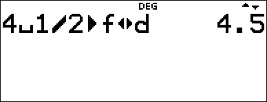 | • | When mixed number output is desired, use the 4n/d³´Un/d mixed number conversion at the end of the input expression. This feature is located in d 1: 4n/d³´Un/d. |
