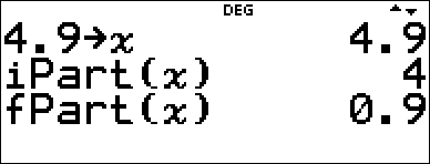 Integer part of a number Syntax: iPart(value) |