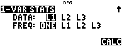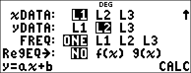 | 1. | Enter data in L1, L2, or L3. (See Data Editor section.) |