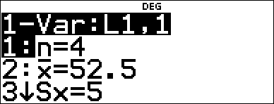 Note: Non-integer frequency elements are valid. This is useful when entering frequencies expressed as percentages or parts that add up to 1. However, the sample standard deviation, Sx, is undefined for non-integer frequencies, and Sx=Error is displayed for that value. All other statistics are displayed.