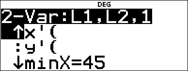 Important note about results: Many of the regression equations share the same variables a, b, c, and d. If you perform any regression calculation, the regression calculation and the 2-Var statistics for that data are stored in the StatVars menu until the next statistics or regression calculation. The results must be interpreted based on which type of statistics or regression calculation was last performed. To help you interpret correctly, the title bar reminds you of which calculation was last performed.