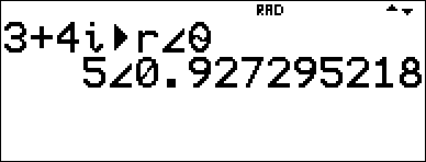 Näyttää kompleksiluvun tuloksen napakoordinaattimuodossa. Voi käyttää vain lausekkeen lopussa. |