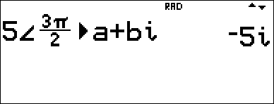 Näppäimillä q $ $ $ valitaan REAL-valikko. Selaa näppäimillä ! ja " REAL-valikkoa ja korosta haluamasi kompleksiluvun tulosmuoto a+bi tai r±q ja paina <-näppäintä.