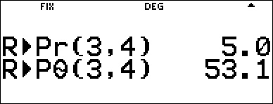 Converte da formato in coordinate rettangolari a formato in coordinate polari e visualizza r. Sintassi: R ´Pr(x,y) |