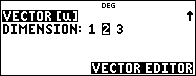 % [vector] ! visualizza il menu vector EDIT, che permette di definire o modificare il vettore [u], [v] o [w].