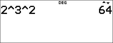 Machten (^) en wortels (x‡). Opmerking: In de Classic-modus worden exponenten met de G-toets uitgewerkt van links naar rechts. De uitdrukking 2^3^2 wordt uitgewerkt als (2^3)^2, met als uitkomst 64.