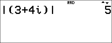 Geeft de absolute waarde (modulus) van een complex getal. Syntax: abs(waarde) (of |þ| in MathPrint™ modus) |