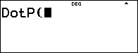 Dot product (Inproduct) van twee vectoren met dezelfde dimensie. Syntax: DotP(vector1,vector2) |