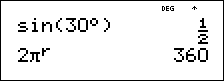 Nous savons que 30¡ = p / 6 radians. Dans le mode par défaut, en degrés, calculez le sinus de 30¡. Mettez ensuite la calculatrice sur le mode radian et calculez le sinus de p / 6 radians.