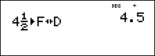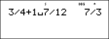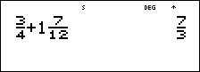 | • | q permet de saisir une fraction simple. Selon que la touche q est activée avant ou après la saisie d'un nombre, le comportement n'est pas le même. Si vous entrez un nombre avant d'avoir appuyé sur q, ce nombre devient le numérateur. |