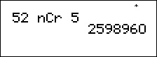 Calcule le nombre de combinaisons de r éléments pris parmi n, n et r étant donnés. L'ordre des objets est sans importance, comme pour une main de cartes. |