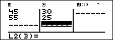 | 1. | Entrez les données dans L1, L2 ou L3. (Voir la section relative à l'éditeur de données.) |