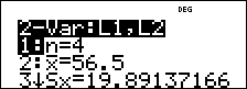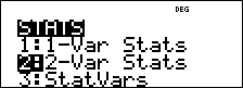 | 2. | Appuyez sur % t. Sélectionnez 1-Var ou 2-Var et appuyez sur <. |