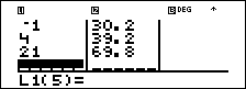 Si noti che L2 viene calcolato utilizzando la formula inserita e sulla riga del risultato viene evidenziato L2(1)= per indicare che la lista è il risultato di una formula.