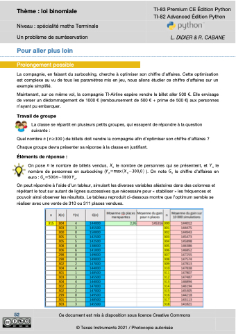 La compagnie, en faisant du surbooking, cherche à optimiser son chiffre d’affaires. Cette optimisation est complexe au vu de tous les paramètres mis en jeu, nous allons étudier ce chiffre d’affaires sur un exemple simplifié.
