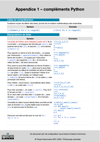 68 Ce document est mis à disposition sous licence Creative Commons © Texas Instruments 2021-2022 / Photocopie autorisée