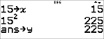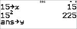 z ist eine Taste mit Mehrfachbelegung, die bei wiederholtem Drücken nacheinander die verschiedenen Variablennamen aufruft: x, y, z, t, a, b, c und d. Außerdem können Sie mit z die gespeicherten Werte dieser Variablen abrufen. In den aktuellen Eintrag wird der Name der Variablen eingefügt, zur Auswertung des Ausdrucks wird jedoch der aktuelle Wert der Variablen verwendet. Um mehrere Variablen nacheinander einzugeben, drücken Sie nach jeder Variablen ".